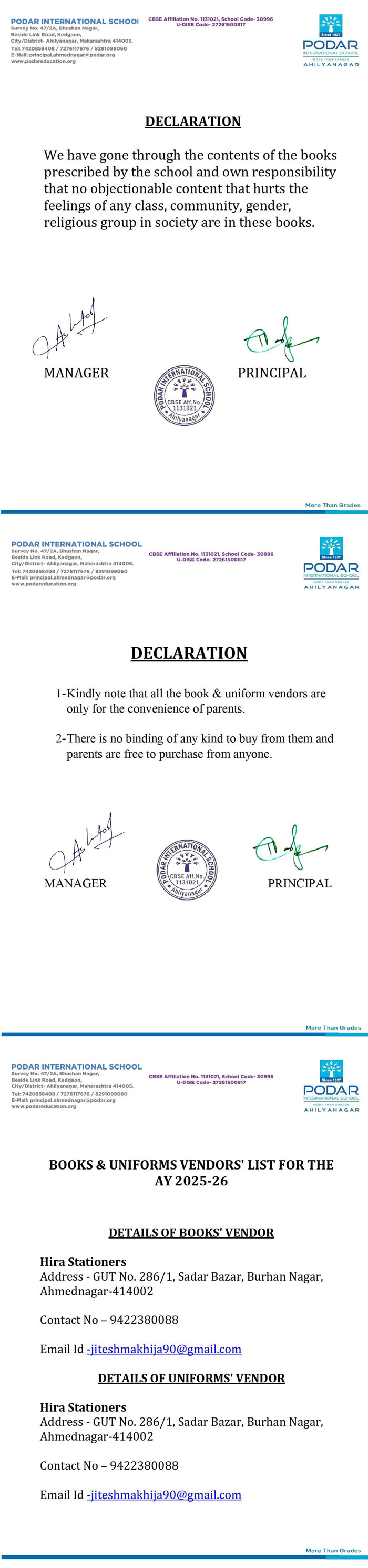 CBSE Declaration Letter in Ahilyanagar, Maharashtra
