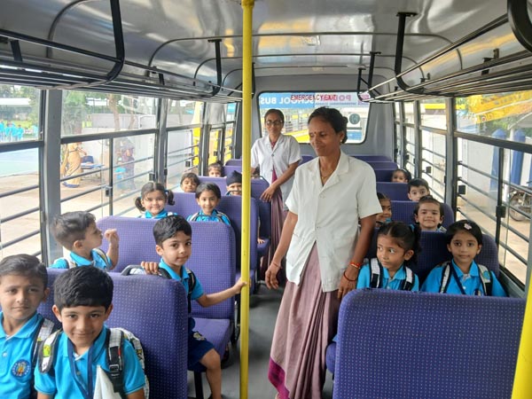 Each school bus is equipped with CCTV cameras, speed governors, two lady attendants, GPS tracking, first aid kits, and a fire extinguisher for emergencies.