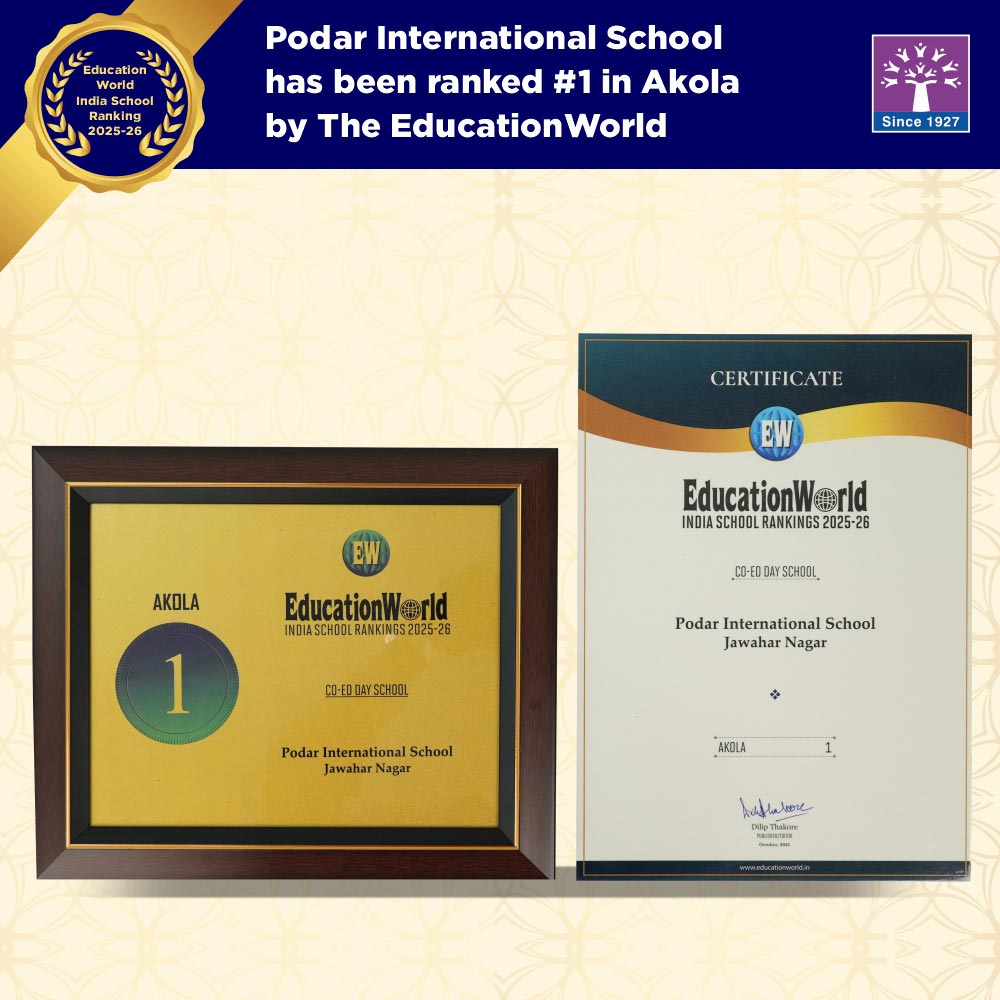 Podar International School has been ranked #1 in Akola by The EducationWorld - 2025