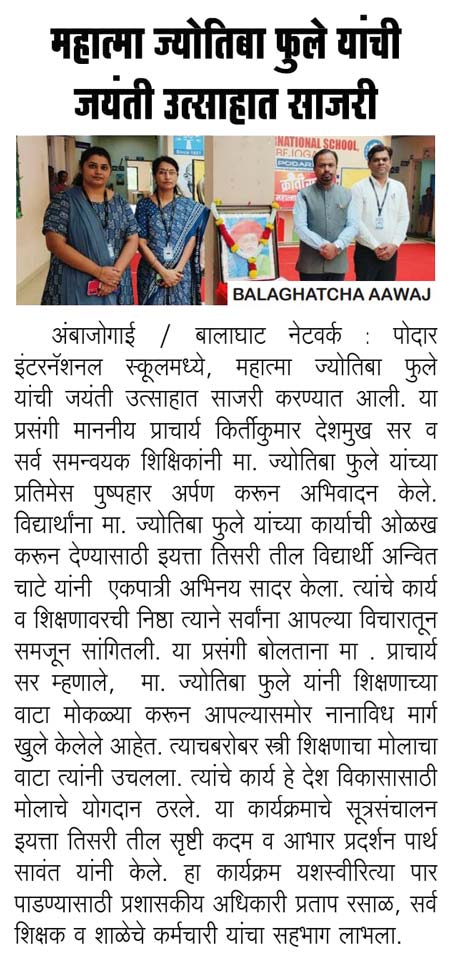 Publication : Vivek Sindhu / Sakal / Lokmat Times / Punya Nagari / Reporter / Balag...