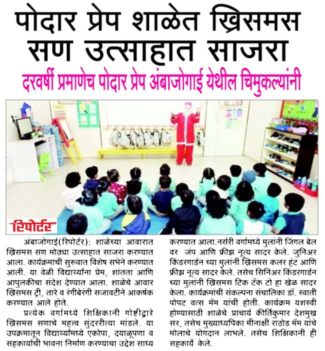 Podar Prep Media Coverage Ambejogai, Maharashtra