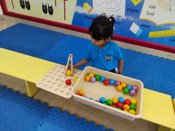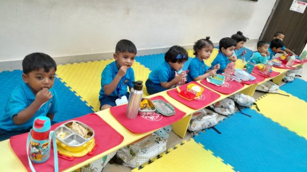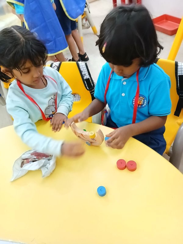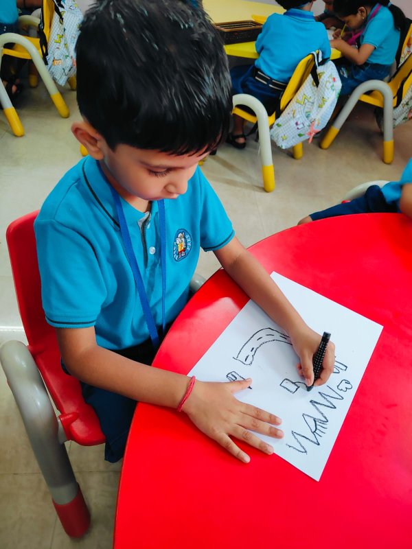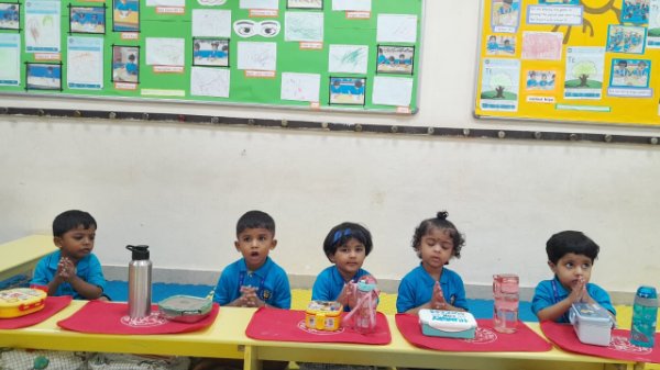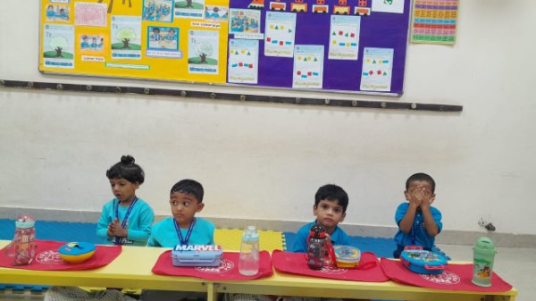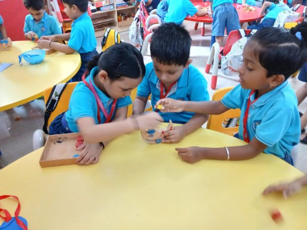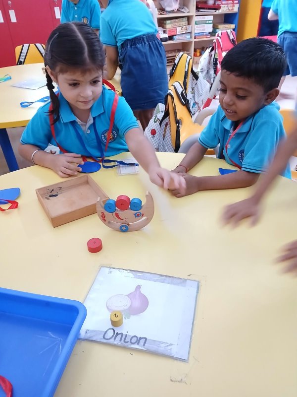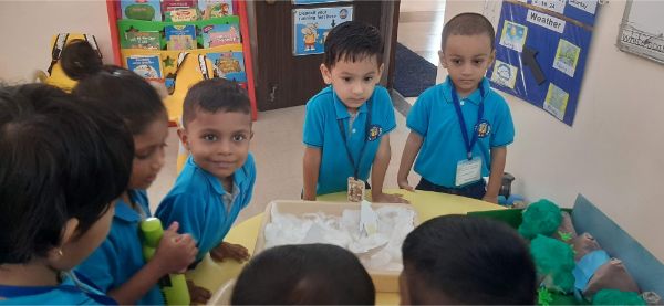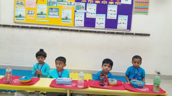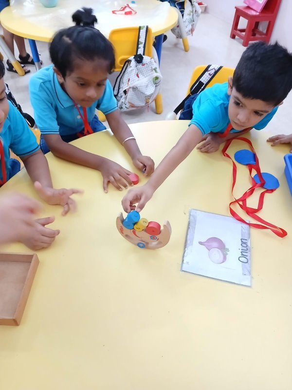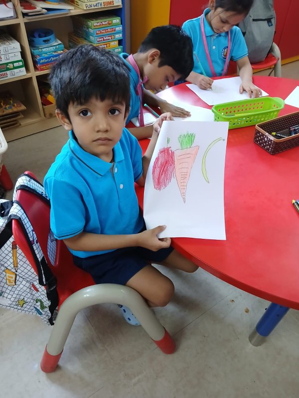 Our Nursery children learnt about different activities of kitchen like chop, strain, boil, stir, mix, cut. These activities will help children develop skills and confidence with hands-on cooking activities. As they read and follow recipes, they become independent and self-directed.