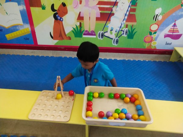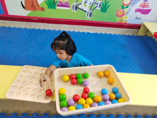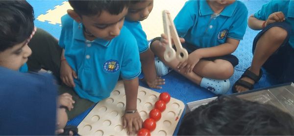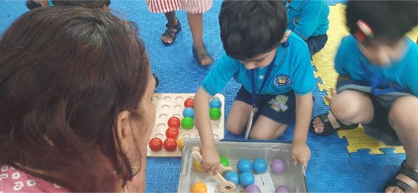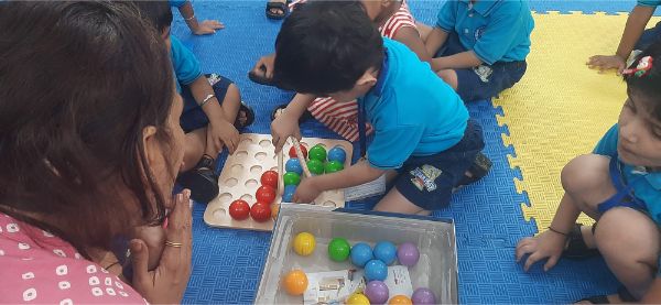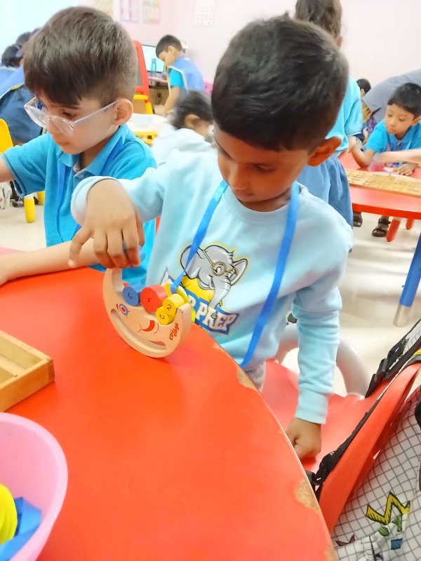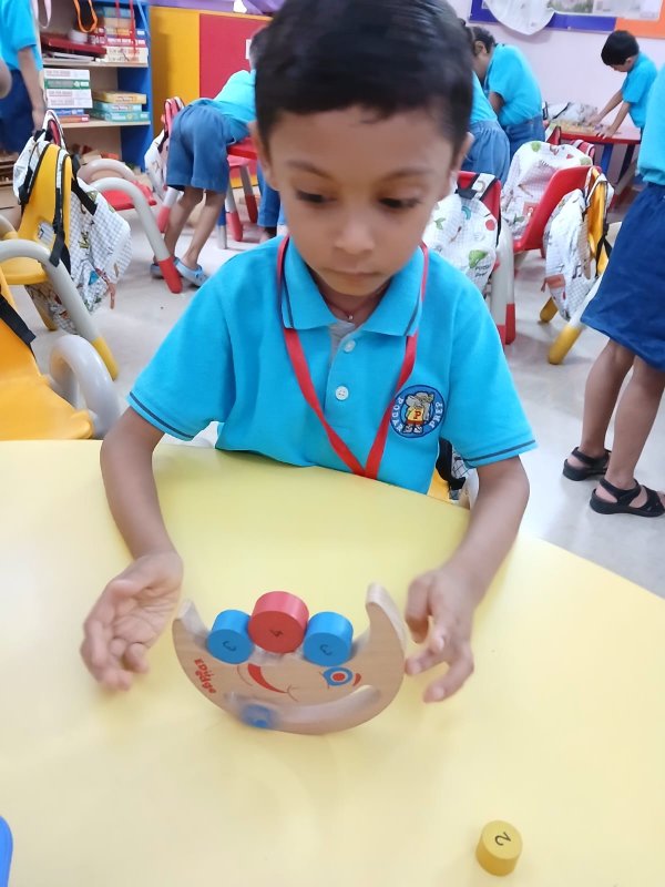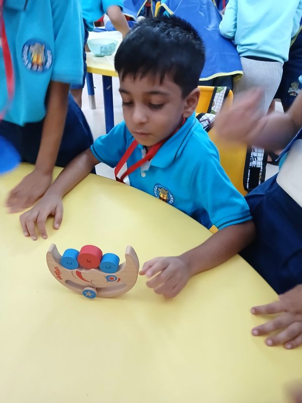 In our Play Explore Learn time today our learners had wonderful time in a fun balance game- game. They were seen balancing as many moons that are circle in shape in a tray without them getting heavy and trumbling.