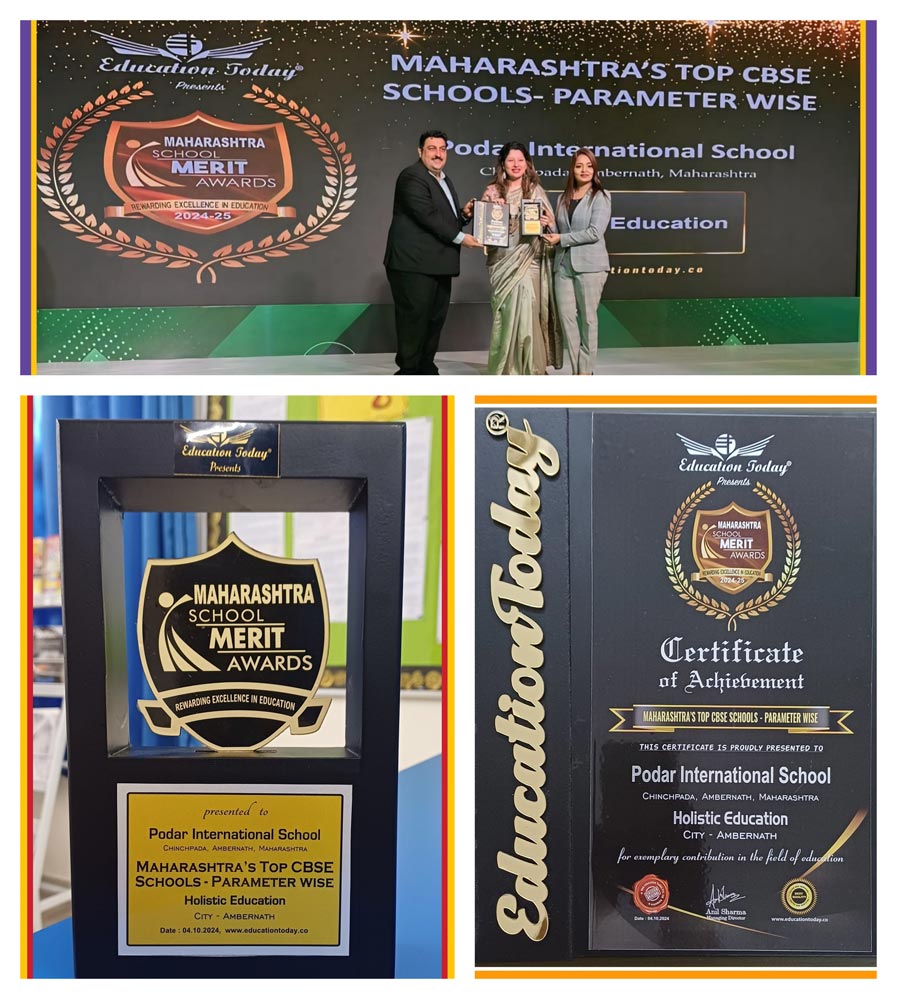 Podar International School Ambernath is proud to announce that it was honored with the Certificate of Holistic Education in the city of Ambernath by Maharashtra School MERIT Awards rewarding excellence in education 2024-25 (Maharashtra Top School – City Wise) by Education Today.