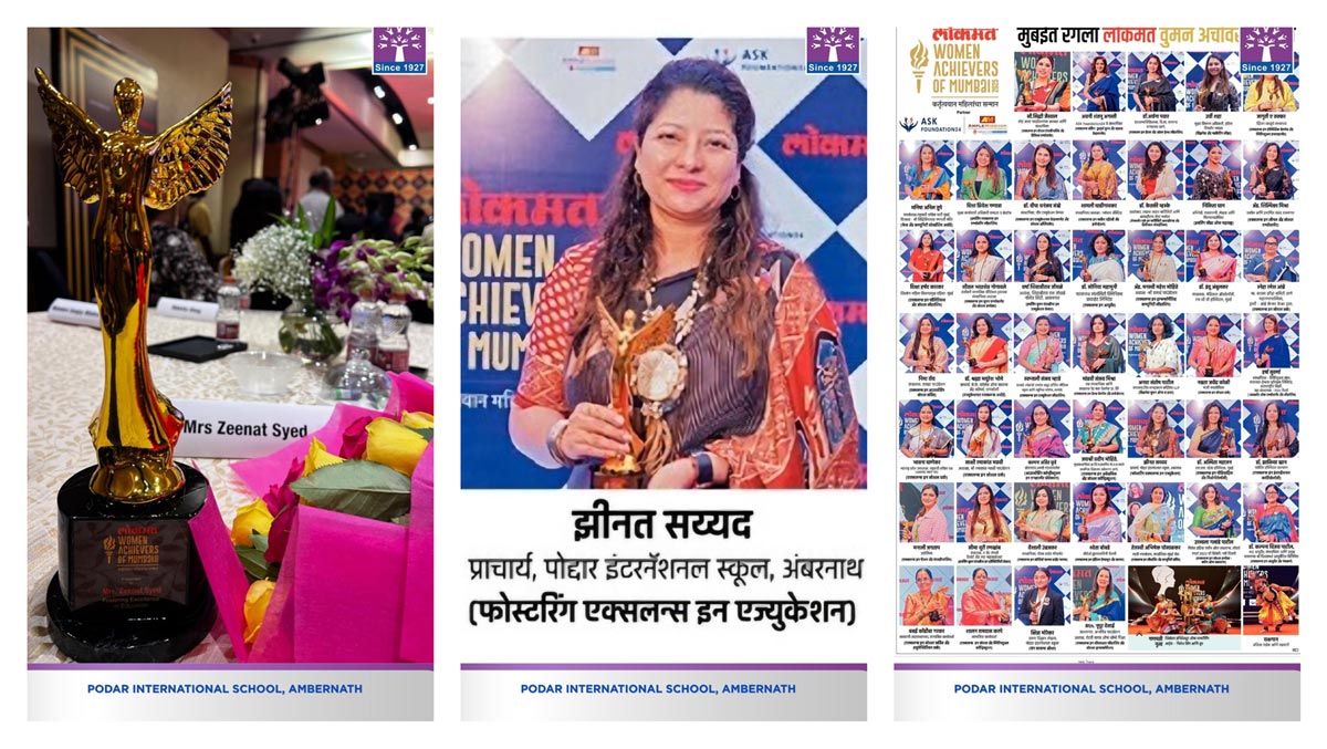 We proudly celebrate Mrs. Zeenat Syed, our beloved Principal Ma’am, for achieving the incredible feat of receiving the Fostering Excellence in Education Award from Lokmat Women Achievers of Mumbai. Your dedication, vision, and hard work inspire us all.