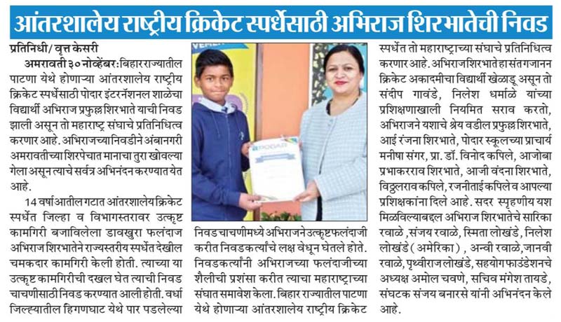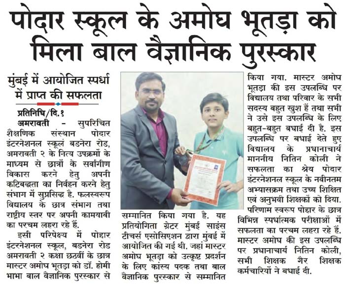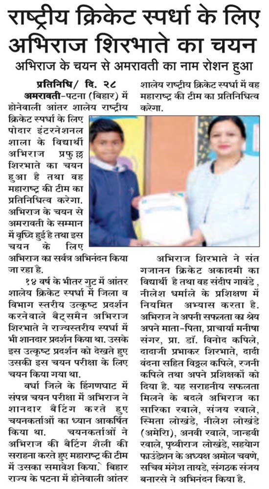 Publication : Dainik Darshan / Amravati Vrutta / Amravati Mahasagar / The Hitavada...