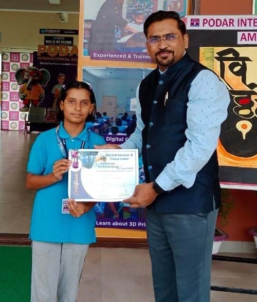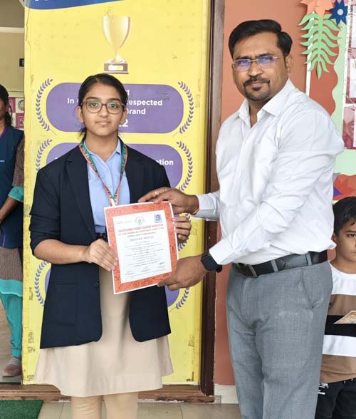 Ms Mannat Pateriya Student of 6th Standard won the prestigious Bal Vaigyanik Puraskar at the National Level Science Competition held in Mumbai, organized by the Greater Mumbai Science Teachers Association, for his outstanding scientific performance.