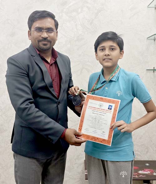 Master Amogh Bhutada Student of 8th Standard won the prestigious Bal Vaigyanik Puraskar at the National Level Science Competition held in Mumbai, organized by the Greater Mumbai Science Teachers Association, for his outstanding scientific performance.