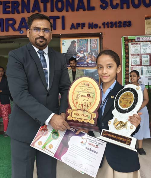 Ms. Aarohi Bhasme won First Prize in the Solo Dance category at the National Level Dance Competition conducted by Rashtriya Kalamandal, Wardha. She also secured Second Prize at the All India Cultural Nation Dance Contest and Festival – Nrutyasanskruti.