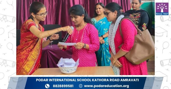 Podar International School has conducted the selection process for the Parent-Teacher Association (PTA) members through a fair and unbiased lottery system. The event was held in the presence of the school Principal, staff, and parent volunteers. Names of interested parents were placed in a draw, and selected members were announced with great enthusiasm. The lottery-based system was appreciated by all attendees as a democratic and inclusive approach.
