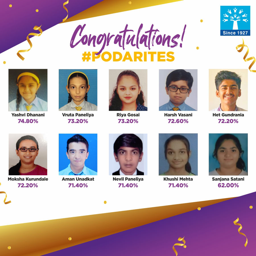 Podar International School, Amreli would like to congratulate all our students who passed out with flying colours in the CBSE Std X Board Examinations.