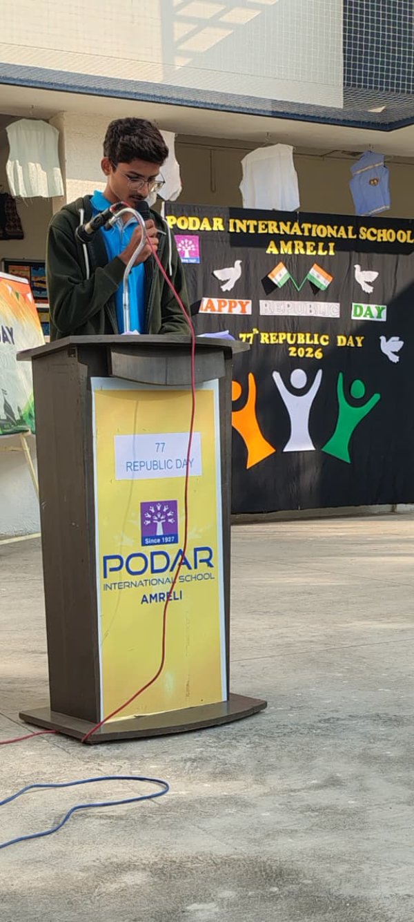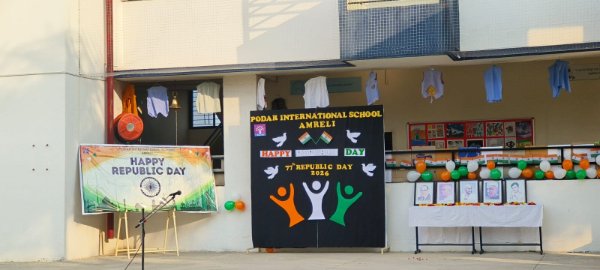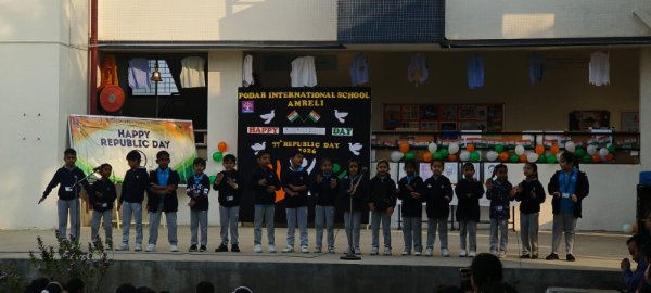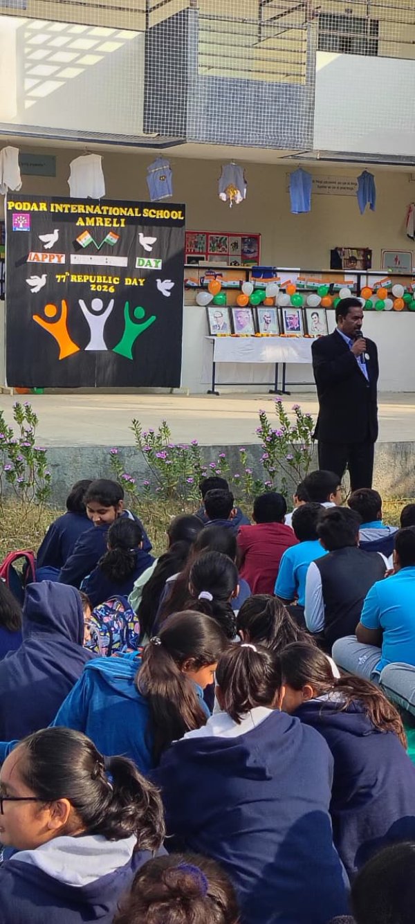 Proud moment! Podar International School, Amreli celebrates the 77th Republic Day with pride and patriotism! Honoring our nation's heroes and the spirit of democracy.