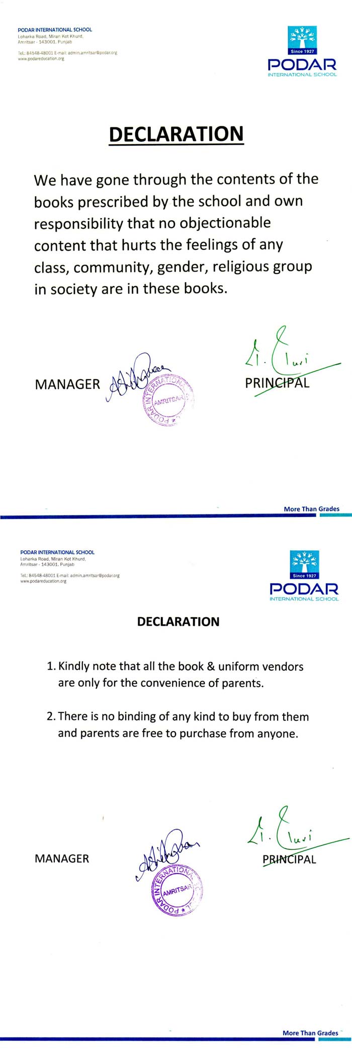 CBSE Declaration Letter in Amritsar, Punjab