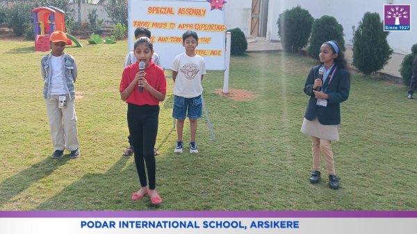 Podar International School, Arsikere, celebrated Hindi Diwas with great enthusiasm and respect towards the language. The programme aimed to create awareness amongnst students about the importance of Hindi in uniting the nation and preserving our cultural heritage.