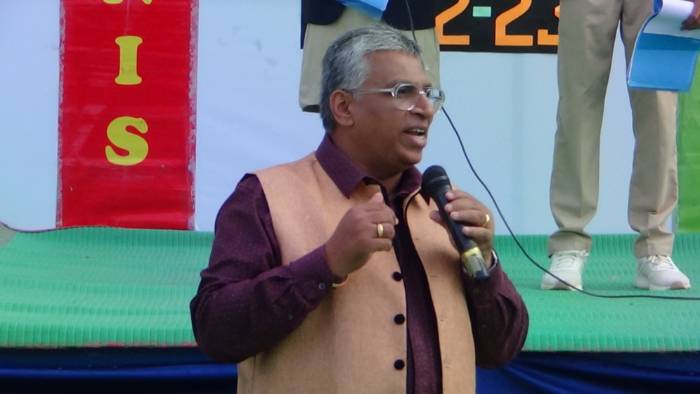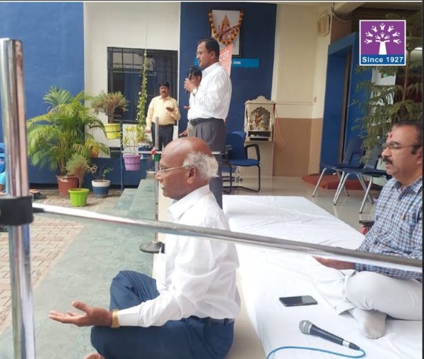 Our beloved Principal, Dr. Raghuveer Y. V., introduced the guest of honor, Mr. Anand Agrawal (Chh. Sambhajinagar Vibhagiya Mantri of Bharat Yog Sansthan), and his eminent yoga team.