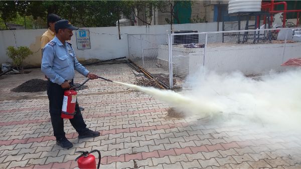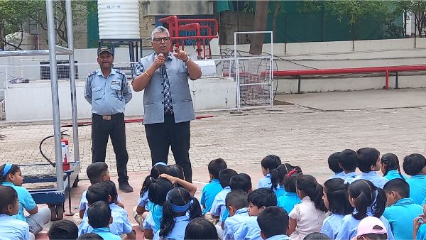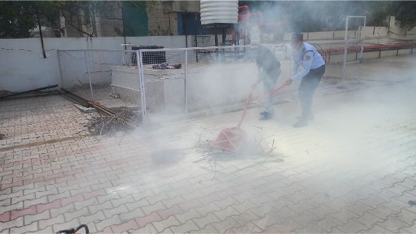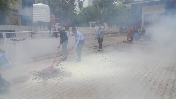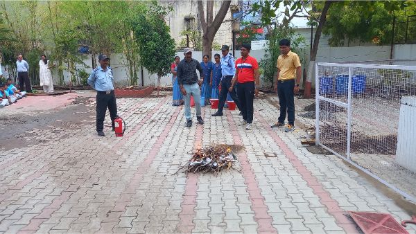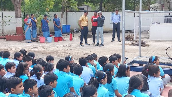 The school Principal Dr. Raghuveer Y. V. instructed the students about the use of fire extinguishers, related accessories, and the dos and don'ts during accidents such as a fire breakout.