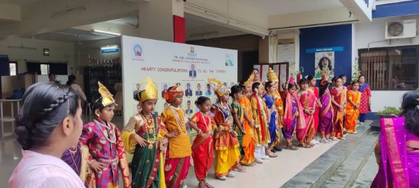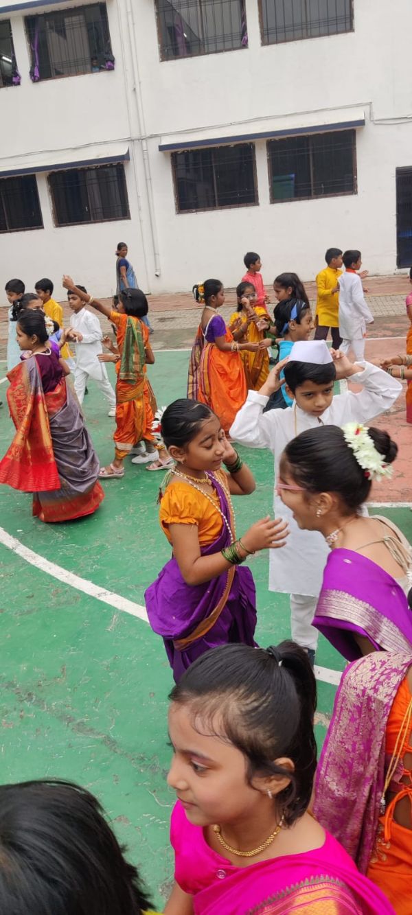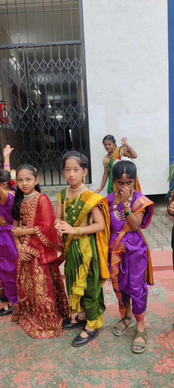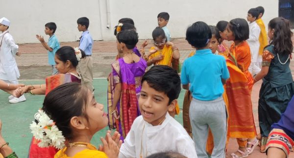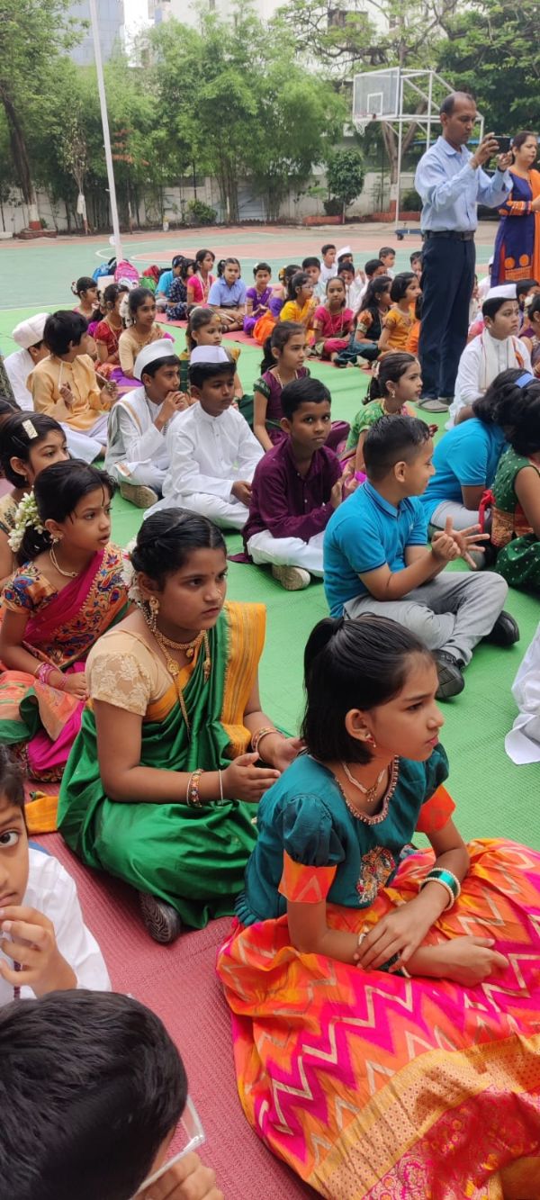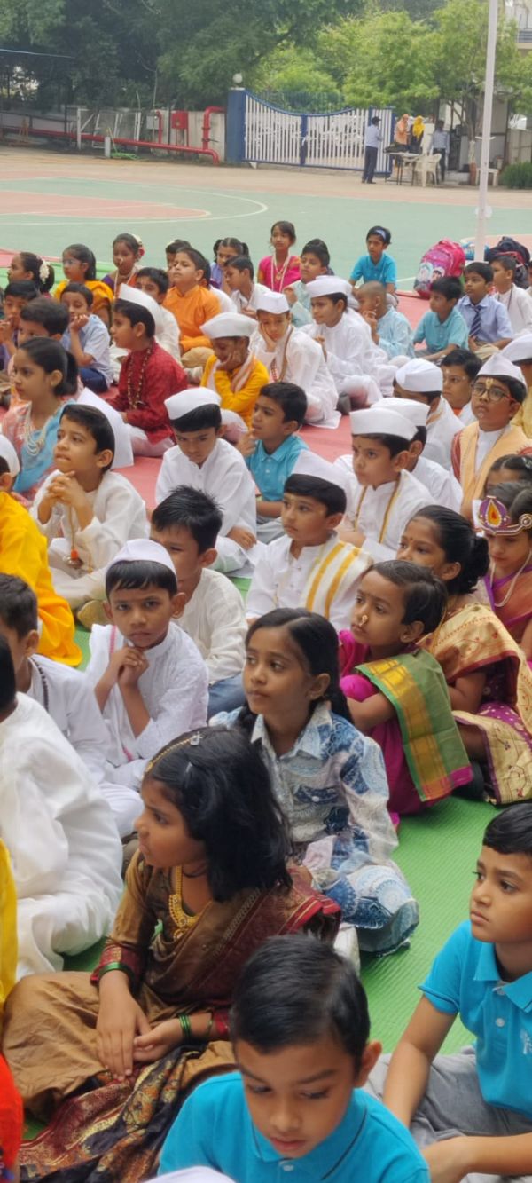 The students from class 1 to 4 dressed in Varkari tradition. Some of the boys and girls came in the attire of Lord Vittal and Goddess Rukmini. The campus illuminated with bright colours and chantings of devotional phrases.