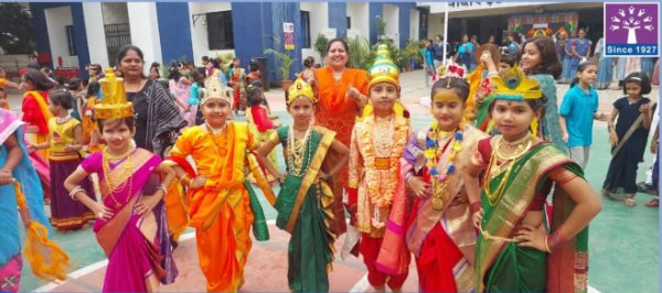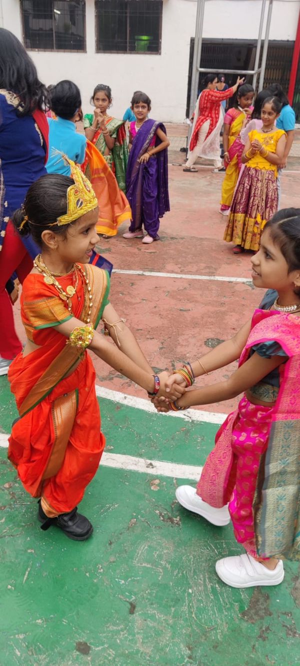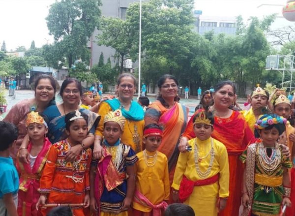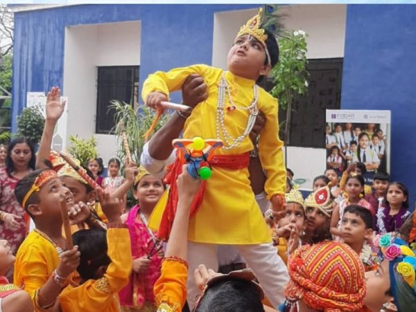 - Colourful Dresses: Students dressed as Lord Krishna.