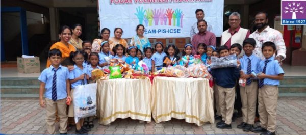 Students of Classes 1 and 2 donated food items to an orphanage in Aurangabad, learning empathy and kindness.