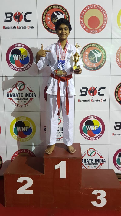 Team Podar International School, Baramati is proud to announce that Miss. Savi Shah of Grade 9 has won Gold medal, Silver medal and Champion of Champions trophy in " Competition which was held in the month of January. There were many participants from various schools and the competition was organized by "World Authority Shotokan Karate - Do Association" in Baramati.