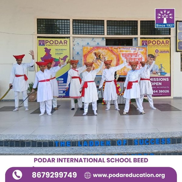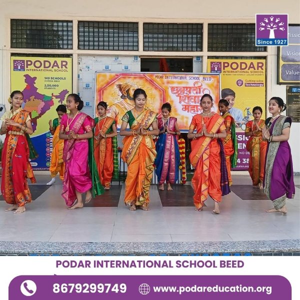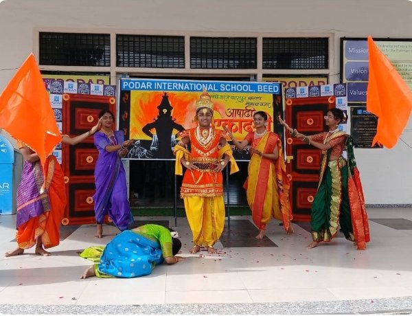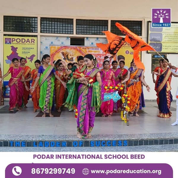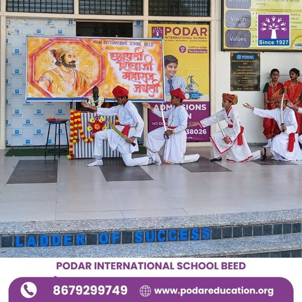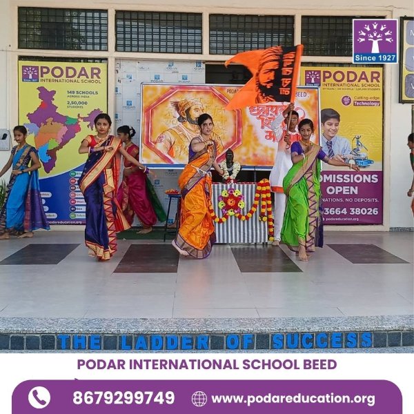 Honoring the bravery and legacy of Chhatrapati Shivaji Maharaj! Students of Podar International School, Beed, paid a heartfelt tribute to the legendary leader with a mesmerizing act and dance performance, showcasing the significance of Shivaji Jayanti.