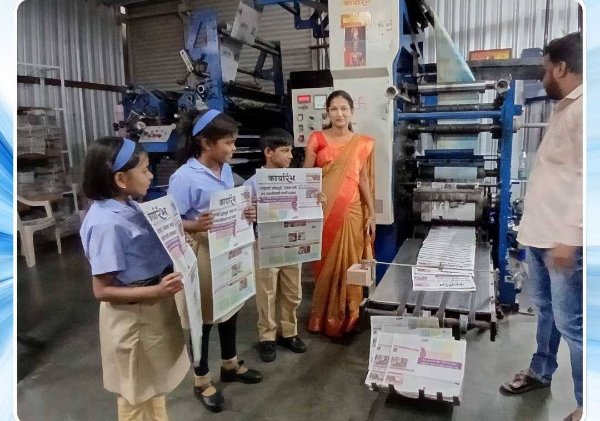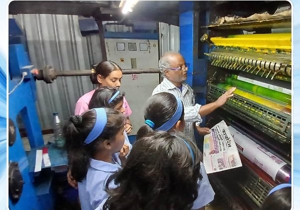 The visit offered students a hands-on experience of the newspaper printing process. The session was made insightful and engaging thanks to the warm hospitality and guidance of "Dainik Karyarambha" team.