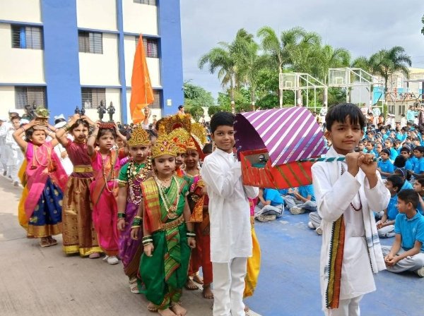 The festivities commenced with a symbolic Waari procession on the school campus, emulating the revered pilgrimage to Pandharpur. Students and teachers joined in enthusiastically, carrying ornately decorated palanquins with Tulsi plants and singing devotional hymns in unison.