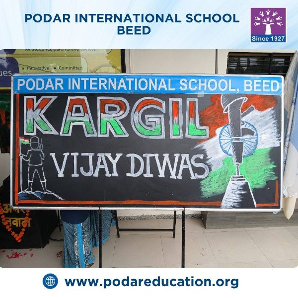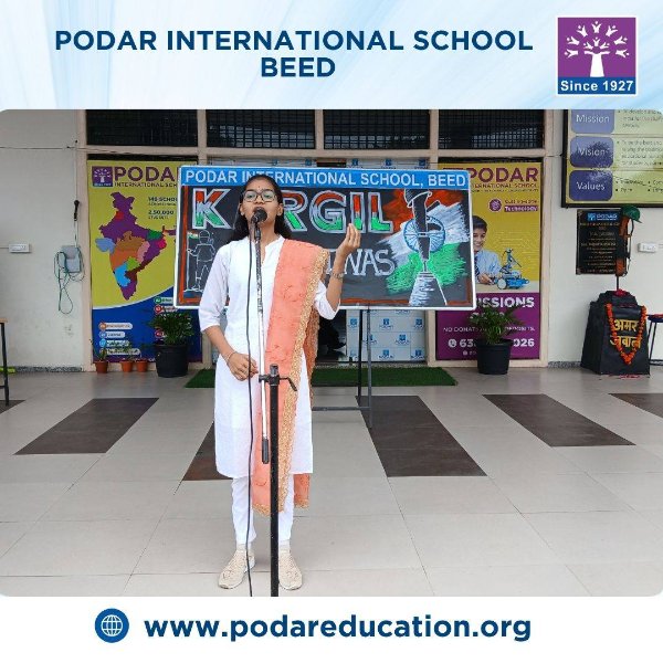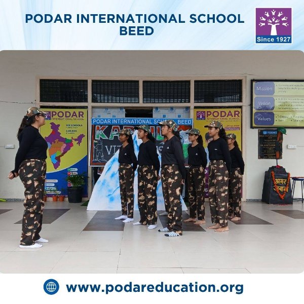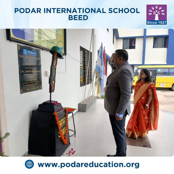 Podar International School, #Beed, solemnly observed Kargil Vijay Diwas to pay heartfelt tribute to the brave martyrs of the Kargil War. A special assembly was conducted by the students of Grade 10 to mark the occasion.