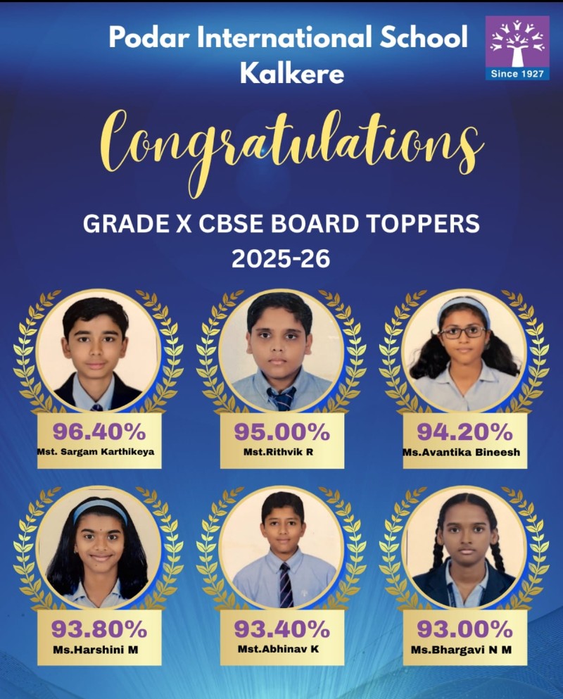 Podar International School Bengaluru, Kalkere celebrates the outstanding success of its students in the CBSE Grade 10 Board Exams 2025–2026.