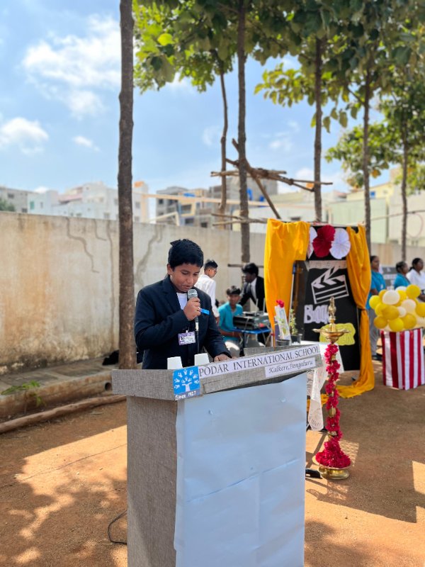 The Children's Day celebrations at Podar International School, Kalkere began with a special assembly organized by the teachers, featuring quiz contests, melodious songs, and energetic dance performances. The students were then showered with love and appreciation by their class teachers in the form of a token of love, who distributed personalized greetings to each child. Adding to the excitement, the school provided a sweet treat of cookies and fruit juice.
