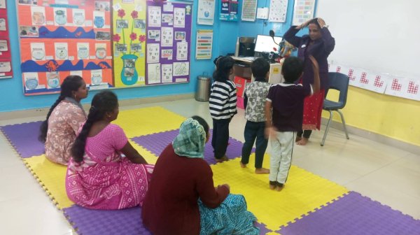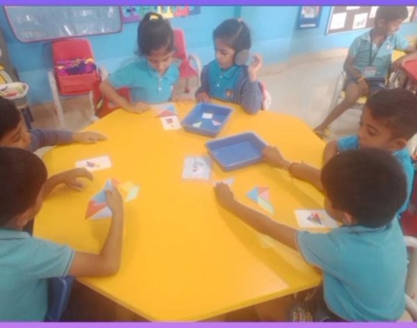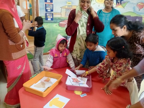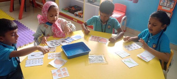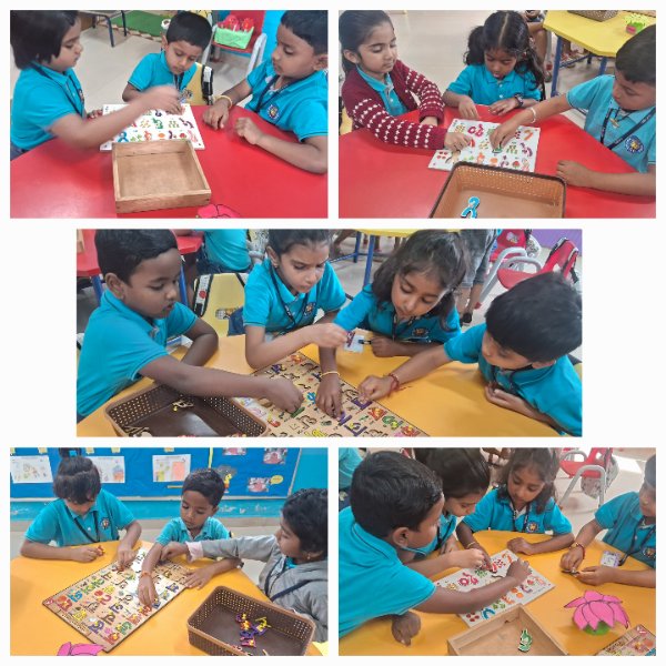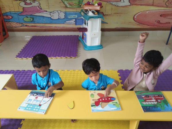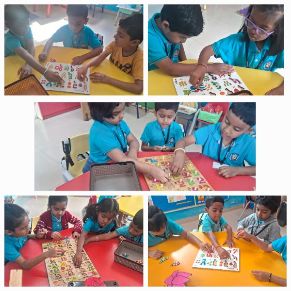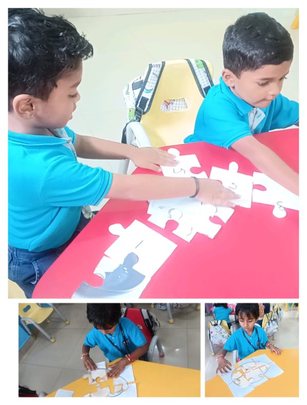 Emerging Roots (Nursery) exploring activities like Puzzle and Shape hammering using only their Left Hand.
