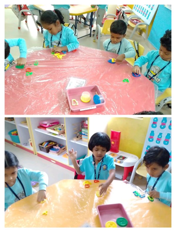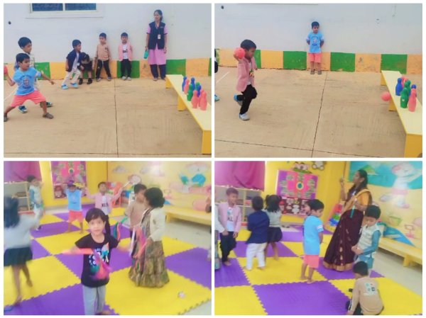 Budding Plants (Junior Kindergarten) exploring activities like Play dough molding and Bowling using only their Left Hand.