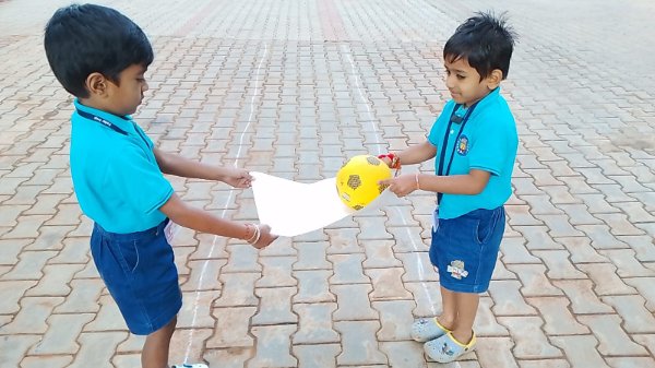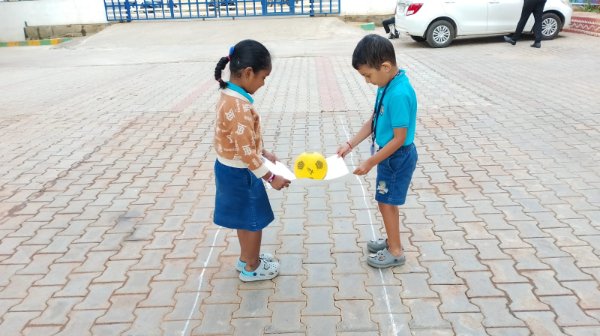 Our Junior KG children celebrated Friendship Day with immense joy and togetherness. The activity, Palm to Palm Ball Pass, brought out their teamwork, coordination, and pure delight as they worked together to keep the ball moving.
