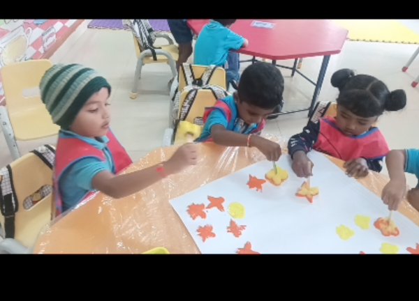 For Jr.KG- Making a flower rangoli with sponges
