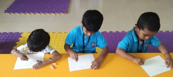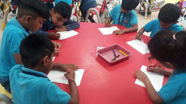 Growing Plants (Senior Kindergarten) exploring activities like Bead transfer and Drawing using only their Left Hand.