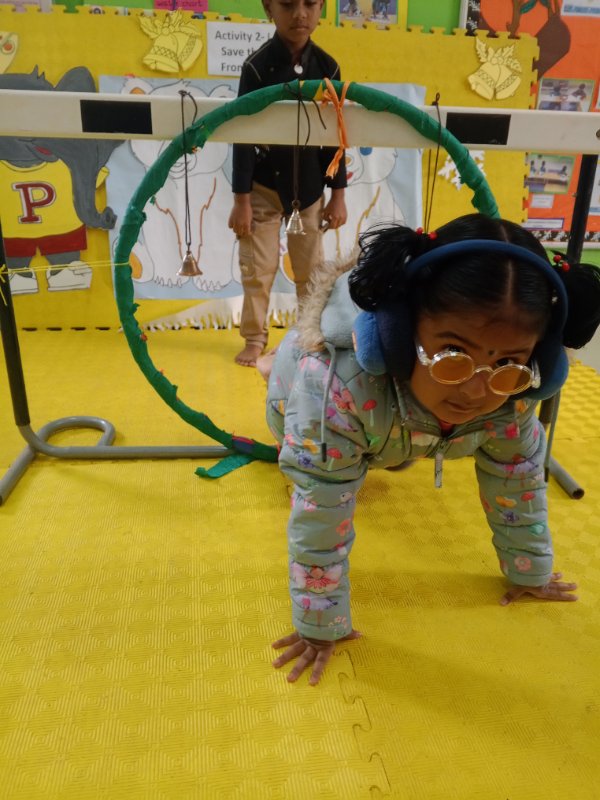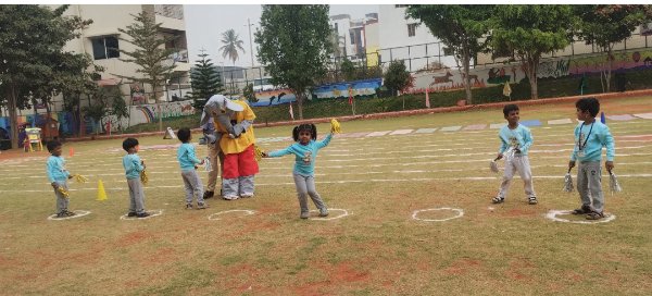 Senior KG children celebrated Friendship Day with enthusiasm and togetherness. The interactive activity, Pass Through the Hula Hoop, inspired cooperation and coordination as children worked together.