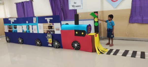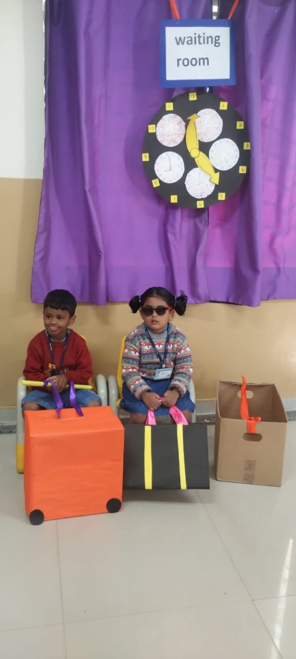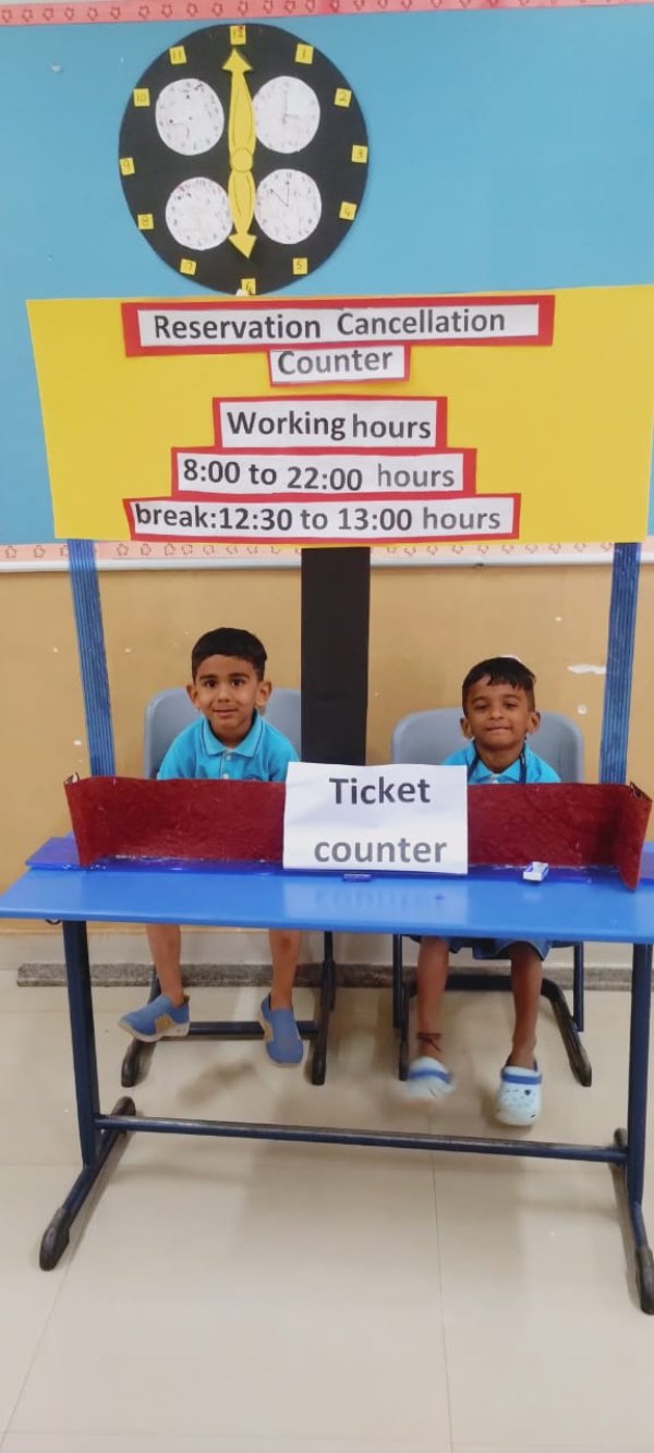 The Nursery children enjoyed an exciting and memorable thematic tour to the Railway Station, filled with fun and learning through real-life experiences. The highlight of the visit was experiencing a train journey, which brought great excitement and joy to the little ones. The children enthusiastically watched the train being flagged off, learning how trains start their journey safely. They explored the waiting area and understood how passengers wait comfortably before boarding. Visiting the ticket counter was a delightful experience, where the children collected tickets for their journey and learned the importance of tickets while traveling. This engaging visit helped children understand the railway system in a simple and enjoyable way, making learning meaningful and fun. #Thematic learning #roleplay# Experiential learning #railway