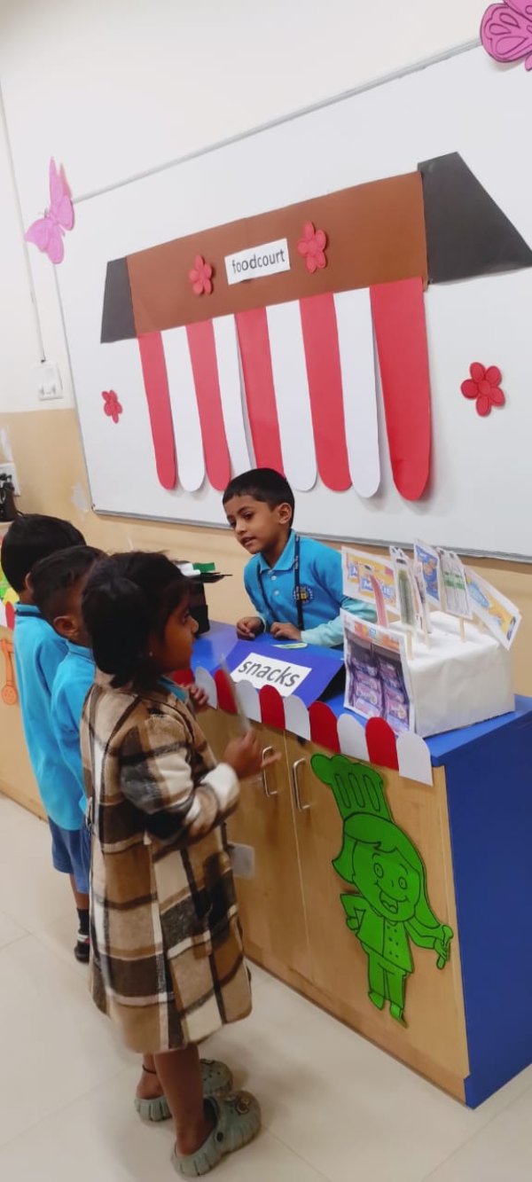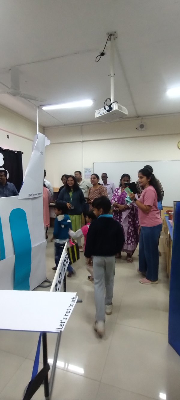 An exclusive Art Exhibition was beautifully curated, showcasing the creative masterpieces of our Junior Kindergarten students. The setup included a ticket counter, where children enthusiastically took turns selling and buying tickets — adding a fun, real-life learning element to the experience.