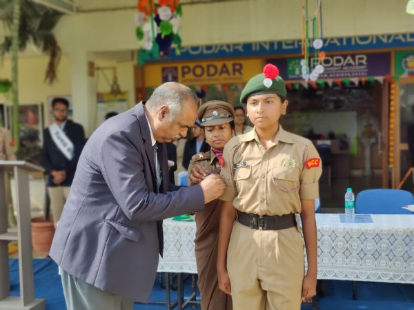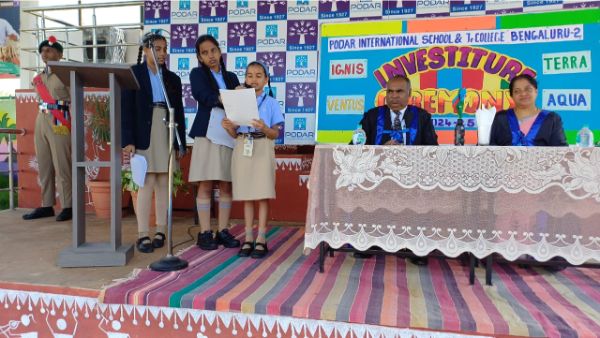 The Investiture Ceremony at Podar International School is a prestigious event marking the formal induction of student leaders for the academic year. During the ceremony, newly elected members of the student council, including the head boy, head girl, and various house captains, receive their badges and sashes, symbolizing their new responsibilities.