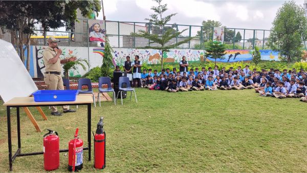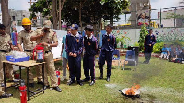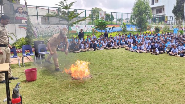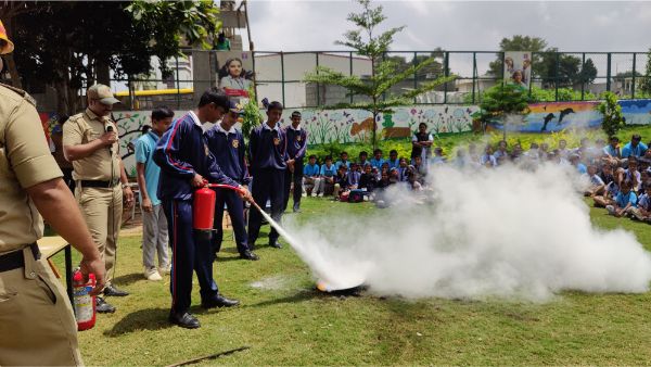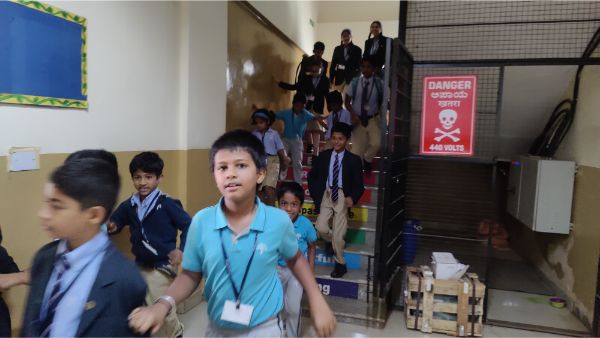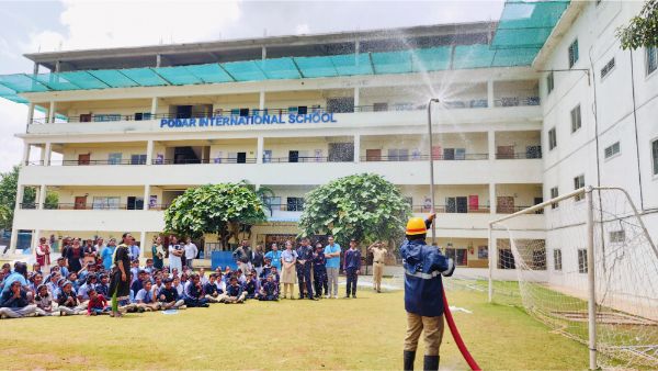 Podar International School conducted a comprehensive fire mock drill to enhance safety preparedness and awareness. The exercise began with a simulated fire alarm, prompting students and staff to evacuate the building swiftly and orderly.
