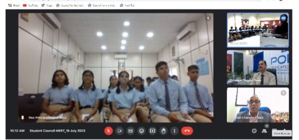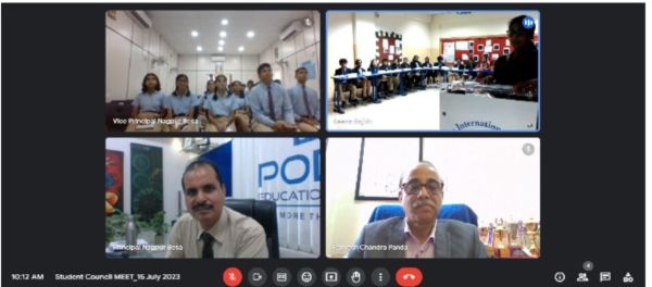 Podar International School, ICSE, #Bengaluru.Virtual Student Council Meeting On the 15th of July, with the initiative of our Principal, Mr.Ramesh Chandra Panda, Podar International School, Bengaluru CISCE, and Podar International School, Nagpur Besa(Maharashtra) had a Virtual Student Council interaction session of the newly elected Council members of both the schools. Principal of PIS Nagpur Besa, Mr.S.N.Sahu, Vice Principal Ms.Shreesha Nair, Mr.Ganesh Ghate the Mathematics teacher, Principal of PIS Bengaluru, CISCE, Mr . Ramesh Chandra Panda, Vice Principal Ms. Indumathi, Secondary Coordinator Ms.Renu Pandey, Senior English teacher Ms.Seena Sajith and all the newly elected members of both the schools were part of the Virtual Council Meeting. The meeting was a wonderful platform for the students to give exposure to them and understand the working culture of the Council. Each member interacted with their counterparts. The members were exposed to the different committees that work in both schools, dispersal duty structure, maintaining discipline in school, house competitions, other competitions, assembly routine, duties and responsibilities entrusted to the members, etc. For the students, it was a great experience. This meeting was proposed by our Principal which was wholeheartedly accepted by Principal Nagpur Mr.S.N.Sahu. It was indeed a great experience for all of us.