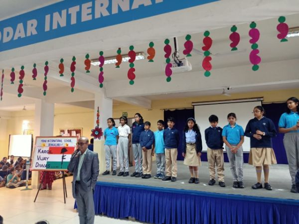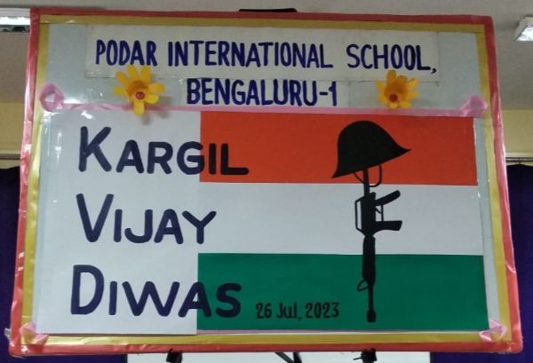Podar International School, ICSE #Bengaluru observed the Kargil Vijay Diwas today(26 July 2023) to commemorate the historic victory of India over Pakistan in the Kargil War in 1999. A special assembly was conducted by Grade 8C to give tribute to our brave soldiers. The children presented skits, dances and songs to celebrate our victory.