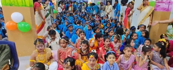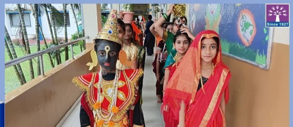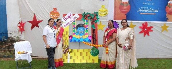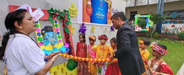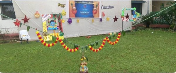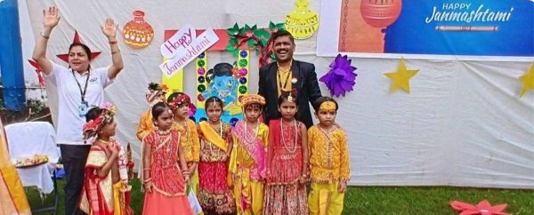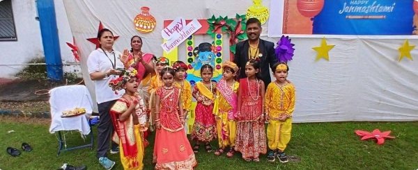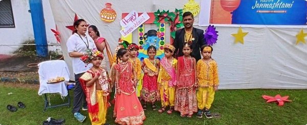 Students participated in bhajans, dance performances, and engaging skits depicting the life and teachings of Shri Krishna. The highlight of the celebration was the Dahi Handi event, where students showcased teamwork, energy, and the playful spirit of Krishna.