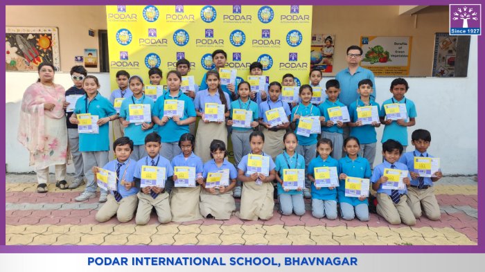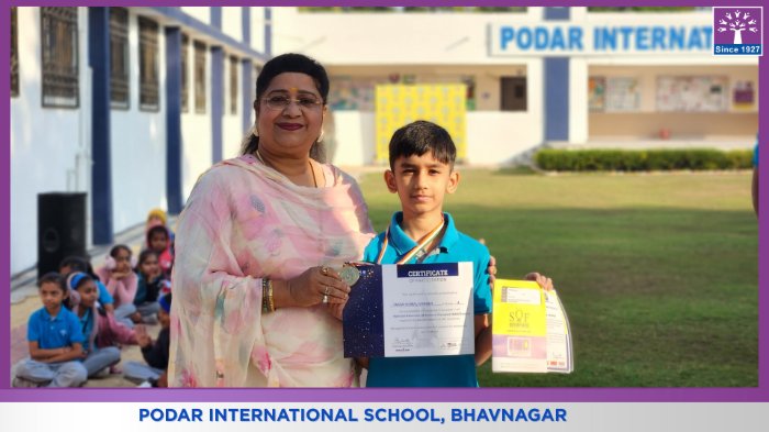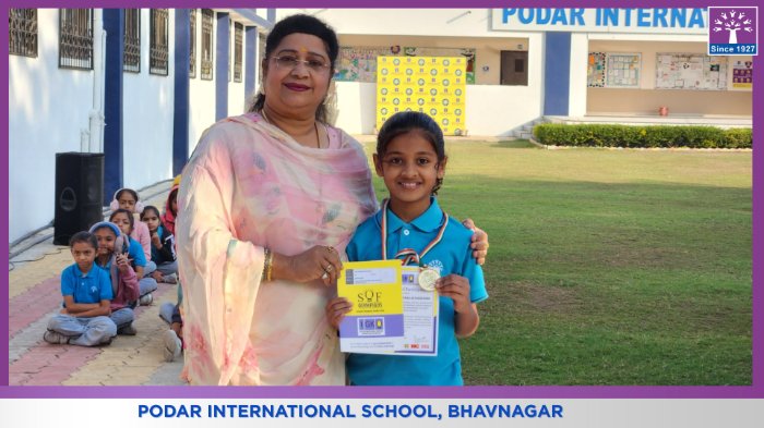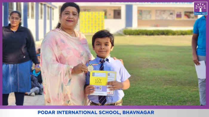 Podar International School, Bhavnagar takes immense pride in announcing that Ravishsinh Gargvanshi (Grade 2), Aaradhyaba Gohil (Grade 3), Taksh Vadher (Grade 4), and Nax Makwana (Grade 5) have secured the Gold Medal of Excellence in the SOF IGKO Olympiad for the Academic Year 2025–26.