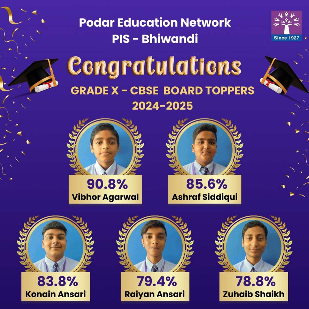 We are incredibly proud of our first batch of students at Podar International School, Bhiwandi for their performance in the 2025 CBSE Class 10 Board Exams!