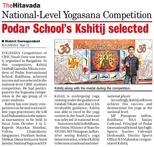 Selection at National Level Yogasana Competition - 2024