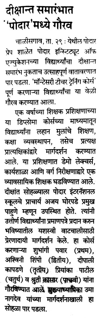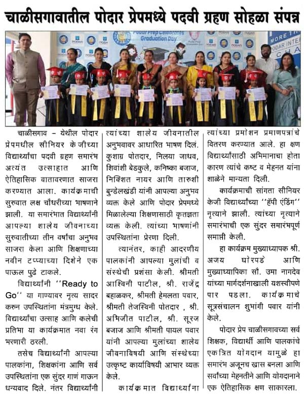 Podar Prep Media Coverage Chalisgaon, Maharashtra