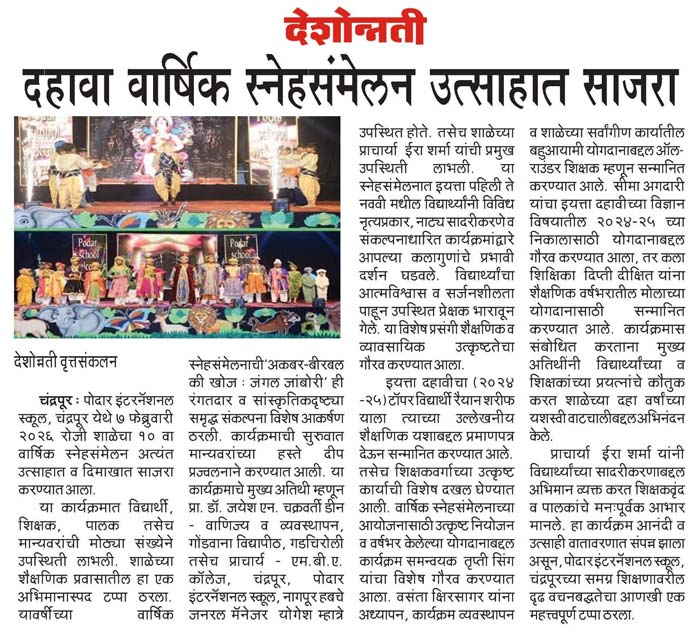 Publication : Deshonnati"At Podar International School #Chandrapur, we ...
