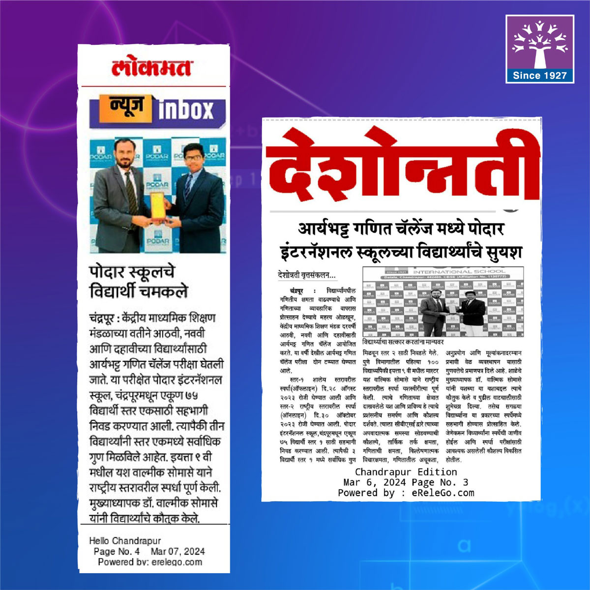 From Podar International School, #Chandrapur total 75 students were appeared for level 1 out of which 3 students got selected for level 2 scoring highest marks in level 1.