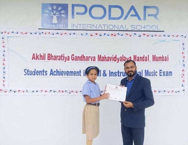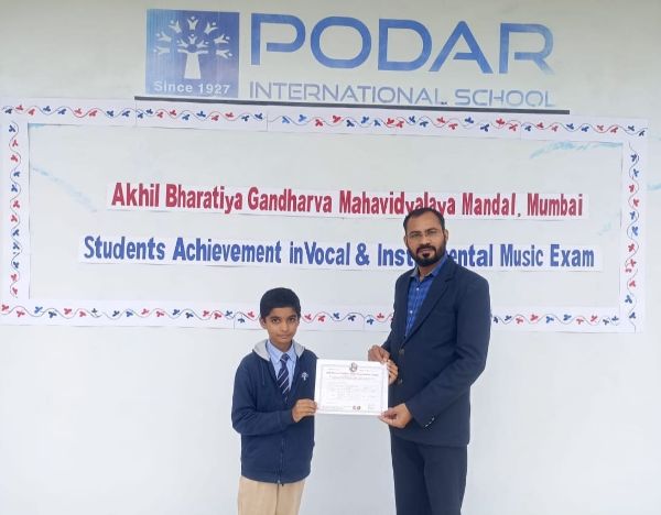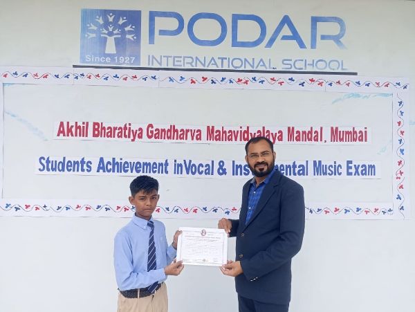 Akhil Bharitya Gandharv Mahavidyalaya Mandal, Mumbai organised vocal and instrumental exam. Music is a world within itself, with a language we all understand and achievements are a result of hard work, determination and constant efforts with a positive attitude.This is why Podar International School, Chandrapur is always one step ahead in felicitation of students.